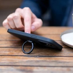 Il est alors fermement verrouillé, ce qui te permet de tenir ton téléphone plus sûrement et de regarder des vidéos en utilisant l’anneau comme support ou en l’accrochant à un crochet, par exemple sur le siège avant d’un avion. Pour retirer le support du téléphone, il suffit de le tourner à nouveau à 90° et de le détacher. Une fois plié, le Ring Mount est plat et compact, ce qui te permet de le ranger facilement dans ta poche.